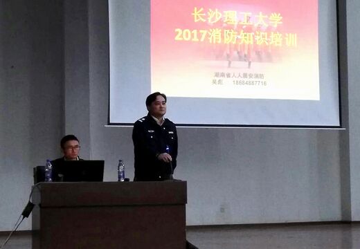 天心区消防宣传培训工作组吴教员作了题为《消除火灾隐患 共建平安校园》的消防知识讲座,他结合学校的实际情况,用身边的案例和详实的数据,从火灾的危害、火灾的预防、发现火灾如何处置、火场逃生与自救四个方面介绍了大学生应掌握的相关消防知识。理论培训结束后,吴教员在讲座现场组织师生们进行了紧急疏散演练,随着报警声的响起,师生依次按照疏散路线,有序地弯下身体,快步到达安全地点,整个演练活动紧张有序。
