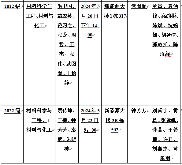 永利集团88304官网材料科学与工程学院研究生中期考核安排表(更改)