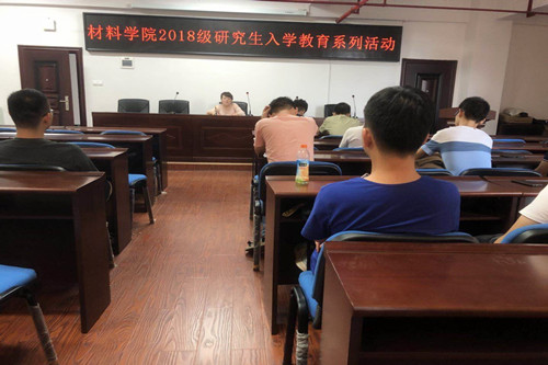 9月14日,材料学院在新能源大楼一栋A302举行“2018级研究生入学教育系列活动”之“专业知识讲座”,科研与研究生干事何小勇、研究生辅导员陈鑫林出席会议,2018级全体研究生新生参加。