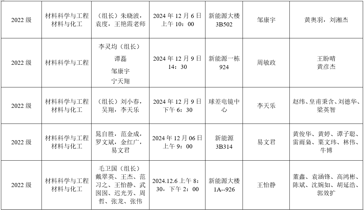 永利集团88304官网材料科学与工程学院研究生论文答辩安排表