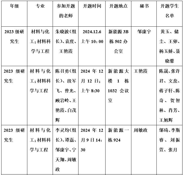 材料科学与工程学院研究生学位论文中期检查安排表(三)