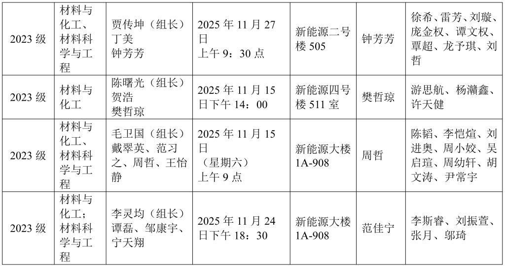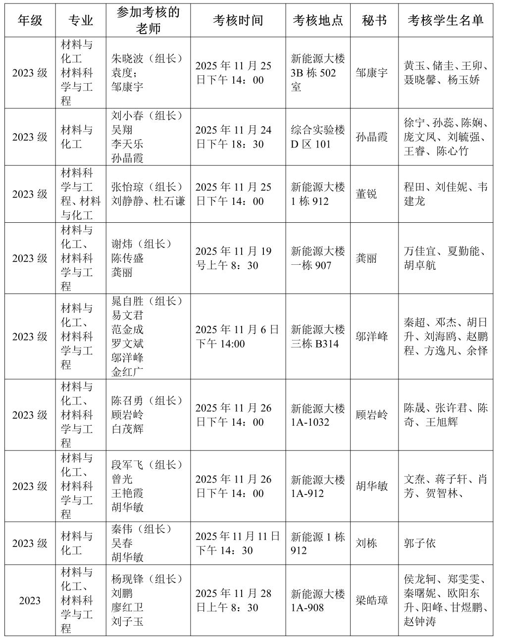 材料科学与工程学院2023级研究生学位论文中期检查安排表