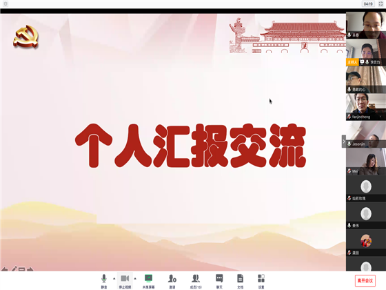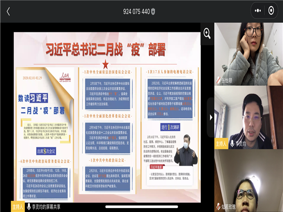 最后,支部13位同志也一一分享了疫情期间展现的感动事件,从政府应对疫情的速度、各地医务工作者火速驰援湖北的举动以及全国各地对于疫情管控的宣传力度无不表现“中国效率”、 “中国精神”、“中国力量”。大家从此次事件中深受启发并表示会将自己的青春和热情都投入到今后的工作中并努力提升自己的业务能力,为祖国的发展贡献自己的力量。
