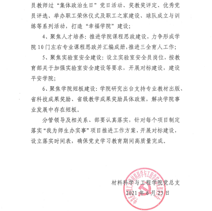 关于公布材料学院党总支“我为群众办实事”项目的通知(院党〔2021〕11号)