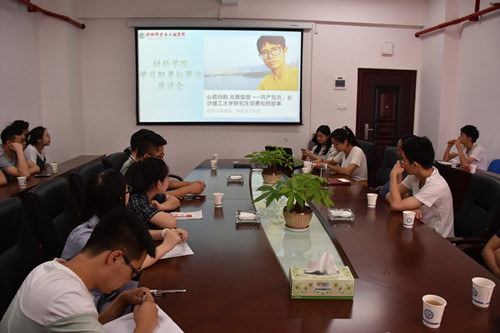 6月12日,材料学院于新能源317会议室召开学习邹勇松事迹的座谈会,材料学院党委书记张国强、党委副书记唐青、辅导员谢易真和陈鑫林出席,研究生和本科生代表参加会议。