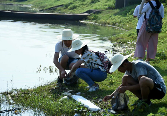实践团沿新墙河步行,对河边垃圾进行分拣,对垃圾来源进行分析。经过一天的走访调研,队员们发现在水流平缓处两岸垃圾较多,多为生活垃圾如塑料制品、废弃衣物;农业垃圾如农药瓶、种子塑料袋;建筑垃圾如水泥块、临时住房铁皮等。在调研过程中,实践团还发现了居民违法设置的捕鱼“迷魂阵”,不少居民在湿地沙洲上放牛养禽。此类行为会对湿地生态环境造成严重破坏,但当地居民借此谋生,如何解决环境保护与居民生计之间的矛盾是环保中的一个亟待解决的问题。随后,队员还发现了被政府查封的非法采砂场以及各类环保方面的标语、警示牌。