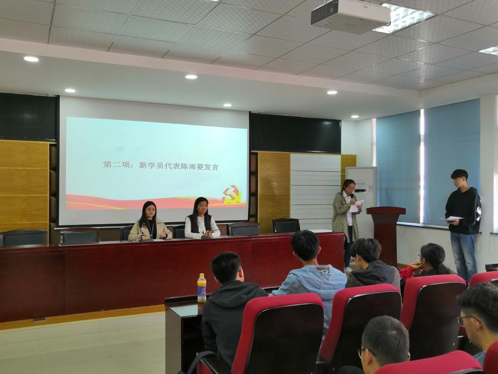 首先,与会人员全体起立,奏国际歌。然后,由新学员代表陈雨菱同学发言,表明要坚决服从党的章程,自愿接受党组织的考验。接着,党建专干谢易真老师向入党积极分子提出三点要求即明确入党动机,及时向党组织汇报学习情况和遵守班级纪律。随后,唐青书记对大家积极向党组织靠拢,参加本次入党积极分子培训班表示衷心的祝贺,并与入党积极分子们一起回顾了党的历史与发展历程,向大家提出殷切期望,希望大家热爱组织,并将这份热爱付诸行动。最后,培训班班主任刘家兴宣布开班仪式圆满结束。