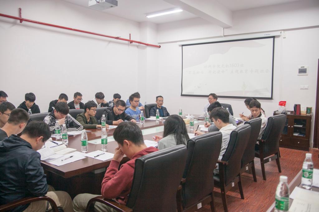 在付书记的启发下,学生们踊跃发言,结合学习《习近平关于“不忘初心、牢记使命”论述摘编》的体会进行分享。付书记听取了学生们的发言,并与他们亲切交流理想信念、专业知识学习、职业发展规划等方面的思想,鼓励学生们在《摘编》的学习中增强对新时代、新使命的理解,学习新思想,做好接班人。班会上大家观看了《不忘初心、继续前进》纪录片,学习了《摘编》内容,并进行了学习内容自测。