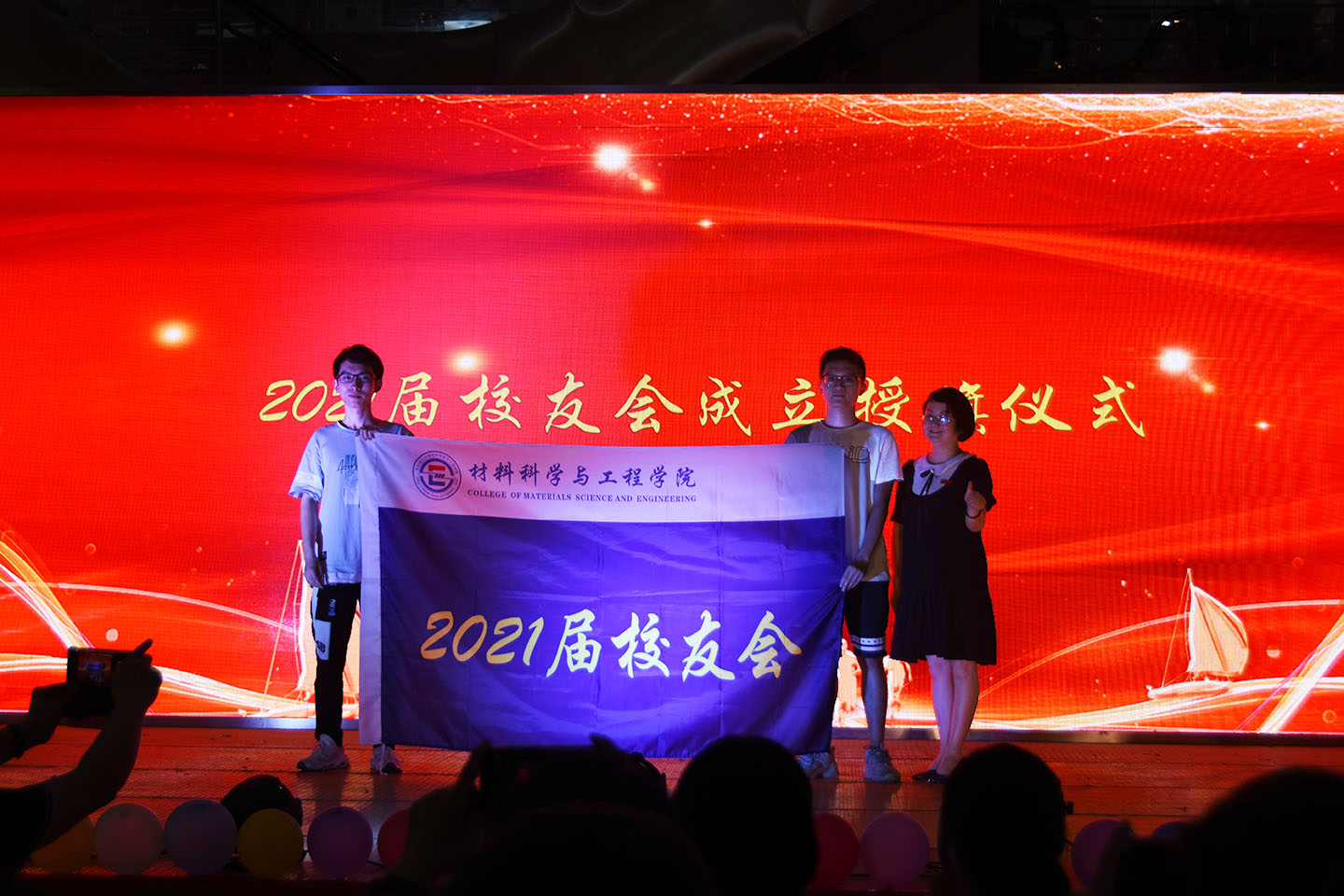 随着回忆视频的播放,本次毕业晚会正式拉开序幕。首先,张国强致毕业贺词,他讲到,大学是最值得回忆的四年,同学们在这里学会了知识,提高了能力,磨炼了品格,希望同学们牢牢记住永利集团88304官网“博学,力行,守正,拓新”的校训,牢记材料学院“天道酬勤,自强不息”的院训,带着老师们的祝福和希望,在人生新的起点上,勇于创新,开拓进取,不负时代!随后,晚会表演正式开始,表演分为少年、祝福和怀念三个主题部分,惊艳的舞姿、悦耳的音乐、幽默的小品以及快板书深深吸引着观众并迎来了热烈的掌声,每一个节目里都融入了对毕业生们的不舍和祝福。晚会期间,为加强校友联系,促进学校发展,学院成立2021届校友分会,陈华宣读了《材料科学与工程学院关于成立2021届校友分会的决定》,郑延恒为校友会授旗。随后,进行了毕业班班主任永久聘书颁发仪式。心理辅导员谢易真带领同学们进行了“优秀的材料人”毕业生班级健心活动,引导同学们善于发现身边人的优点,大声说出身边同学的优点,团结班级凝聚力。最后,随着相机快门声的响起,本次毕业晚会落下帷幕。