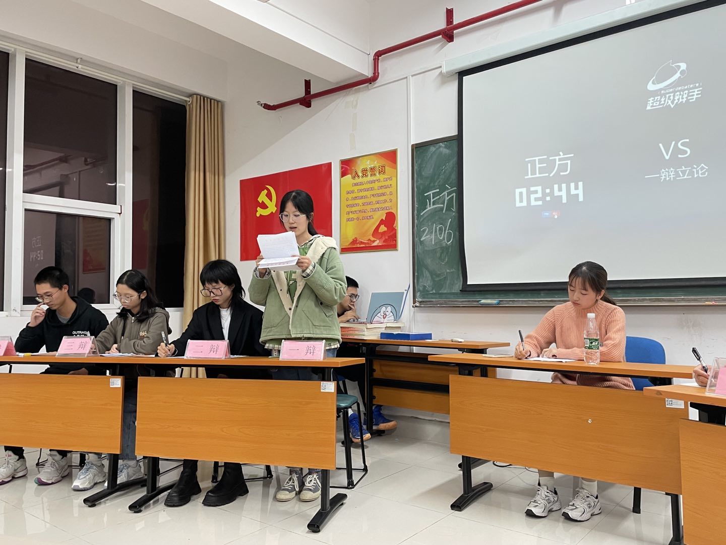9月23日,20级辩论队成员进行表演赛,正反双方就“当不正义的手段已成为实现结果正义的唯一方法时,当不当用”展开了激烈的辩论,为本届“执言杯”新生辩论赛拉开序幕。10月15日-11月27日,共六支21级班级辩论队参与了本届辩论赛,在执言辩论队成员的指导下,进行了三轮积分赛与半决赛。比赛期间,各班级辩论队成员“执言之剑,破敌之论”,奉献了精彩的比赛。经过三轮积分赛与半决赛的激烈角逐,材料2103班、材料2106班进入决赛。12月3日,材料学院在金盆岭校区四号教学楼报告厅开展了本届新生辩论赛决赛,材料学院21级辅导员王志亮、水之清辩论队17级成员朱飞、材料学院执言辩论队17级成员何张龙出席。正方材料2106班与反方材料2103班针对“成大事者不拘小节/必拘小节”展开了辩论,双方辩手引经据典、口若悬河,最终,材料2106班取得胜利,成为第六届“执言杯”新生辩论赛的冠军,材料2103班获得亚军。