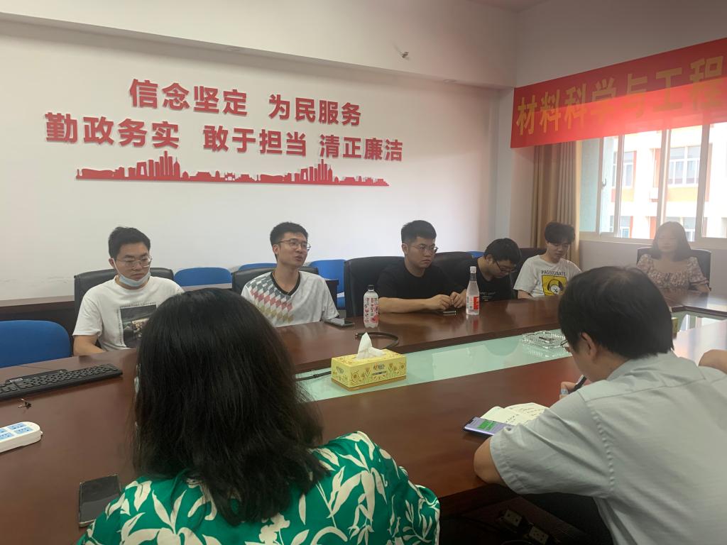 6月9日上午,材料学院于新能源大楼1栋313开展毕业研究生座谈会,材料学院党总支书记唐超文、分管研究生副院长杨现锋出席会议,党总支副书记陈华主持,毕业研究生代表楼雪纯等13人参加。