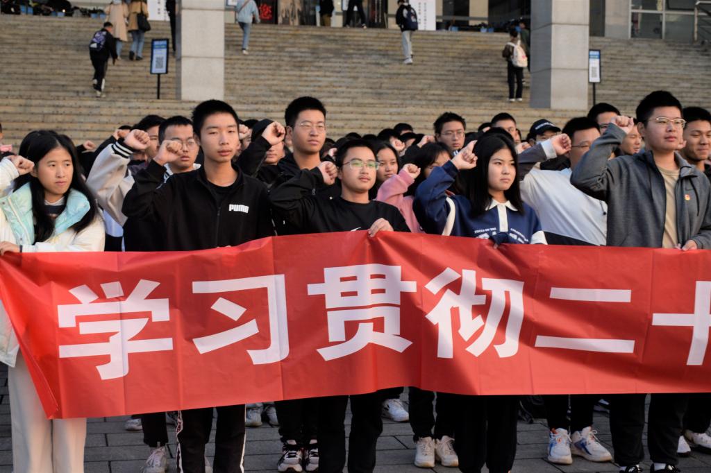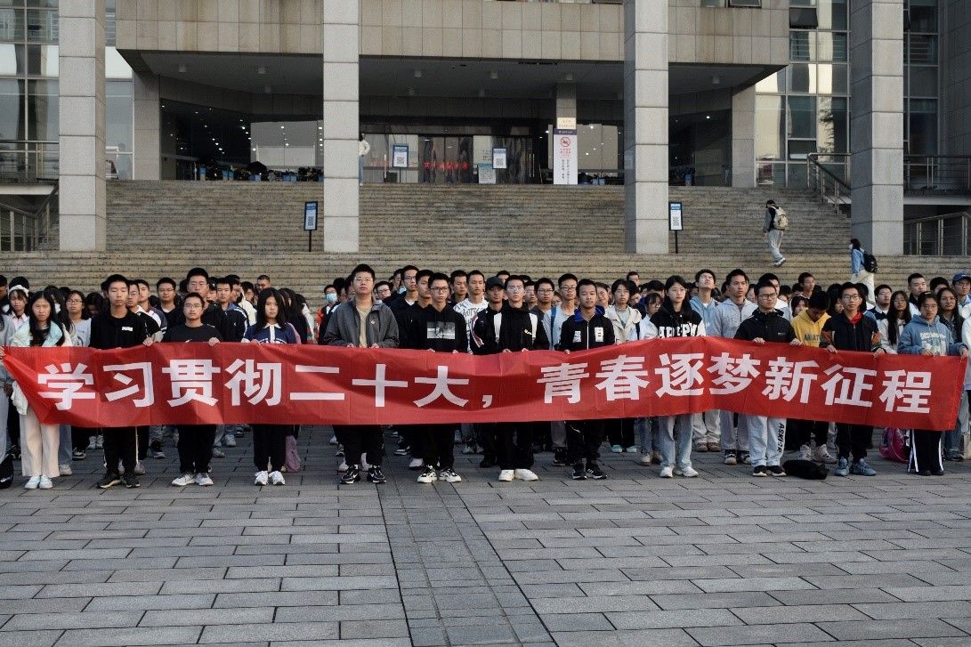 1031日早上7时,材料科学与工程学院2022级新生一大早就在云塘校区国旗台下聚会,借升国旗为契机,在国旗下开展了党的二十大精神的学习活动。