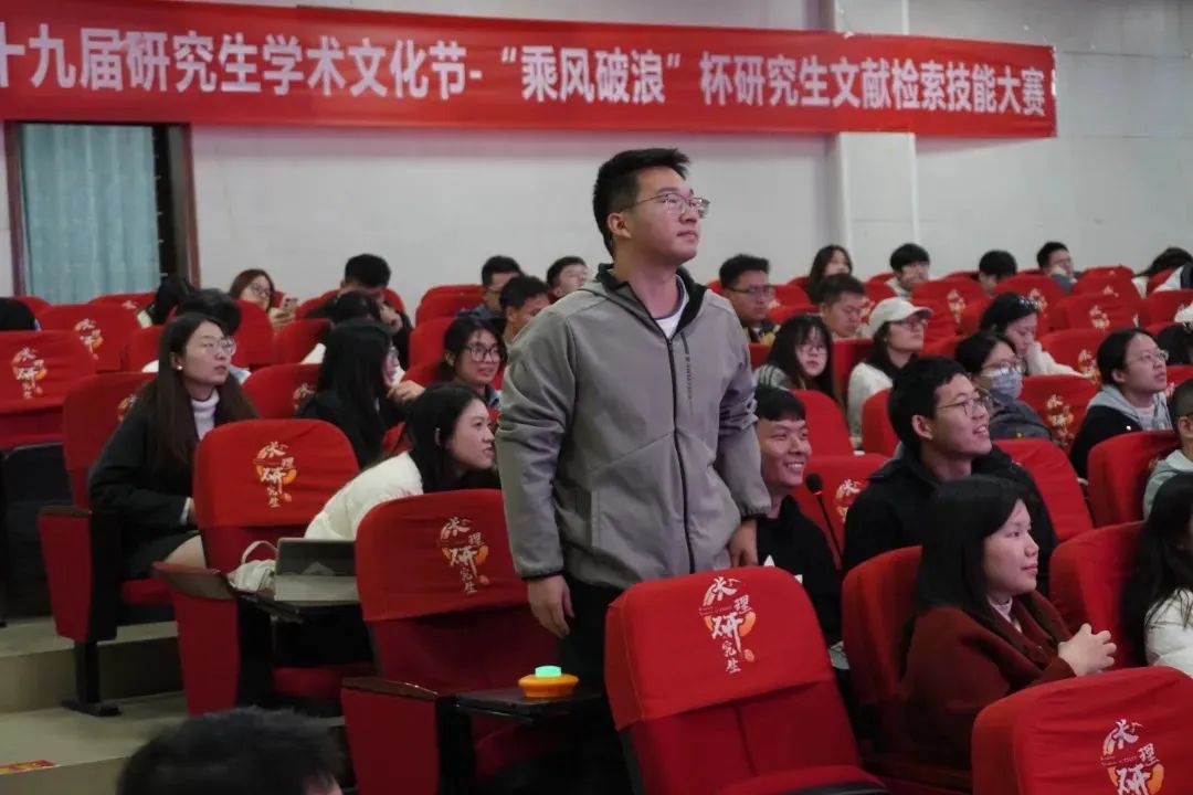 本次赛事共吸引了243支队伍、728名研究生踊跃参与,经过初赛的激烈角逐,14支队伍成功晋级决赛。决赛分为基础知识抢答和PPT现场讲演两个环节。首先,两位主持人介绍了本次决赛两个环节的规则并宣布比赛正式开始。在基础知识抢答环节,参赛选手们严阵以待、毫不松懈。各位选手短兵相接,凭借全面而丰富的知识储量,比赛难解难分,紧张又充满激情。PPT讲演环节,14位汇报选手依托所学专业知识,分别从文献检索方法、所选研究领域的现状和发展前景等方面进行了汇报,整个环节纷呈,选手们都准备十足,汇报内容丰富,观众们也从中受益匪浅。同时,评委老师从PPT主题内容完善度、语言表达技巧、PPT制作、参考文献引用格式和团队协作情况五个方面进行打分,经综合评定最终1支队伍获得大赛一等奖、3支队伍获得二等奖、5支队伍获得三等奖。最后范金成教授对本次比赛进行了总结。他充分肯定了同学们的综合表现,指出研究生要紧跟学科前沿,夯实基础,不仅要深入钻研专业知识,还应抓住机会锻炼综合能力,力求全面发展。同时,他对大赛提出了更高要求,希望进一步扩大覆盖面,提升专业影响力,严格把关,不断追求更高目标。