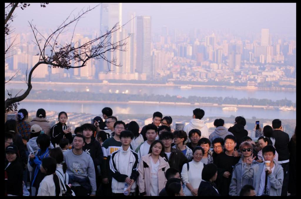 随后,队伍从南门出发,穿过岳麓山南门检票口,经过具有深厚文化底蕴的爱晚亭,感受秋日层林尽染之美。同学们正式开启登山之旅。大家不畏山路陡峭,相互鼓励,勇攀高峰,最终顺利登顶观景台,俯瞰湘江与长沙城景,领略“一览众山小”的豪情。