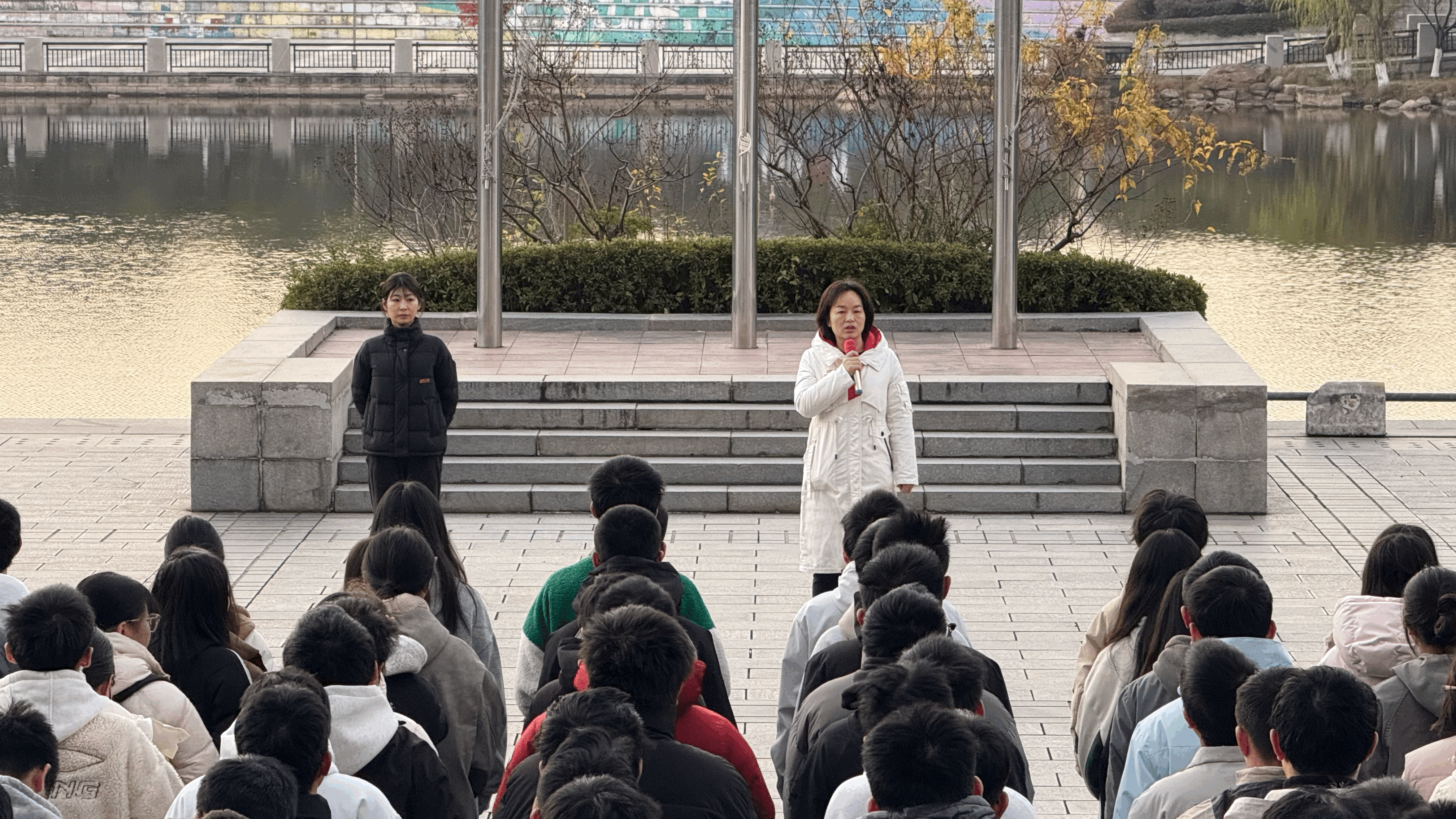 升旗观礼仪式结束后,邵巧艳发表国旗下的讲话。她立足国家重大战略需求,指出材料科学是支撑国家科技自立自强的关键领域,肩负着破解卡脖子难题的重要使命。她勉励同学们坚定理想信念,厚植家国情怀,弘扬严谨求实、勇于创新的科研精神,将个人成长融入民族复兴的伟大进程中,在材料强国建设中贡献青春力量。