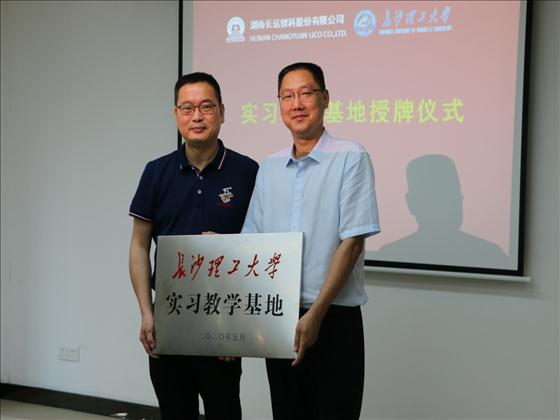6月12日下午,永利集团88304官网材料学院与湖南长远锂科股份有限公司实习教学基地授牌仪式在湖南长远锂科股份有限公司研发中心会议室举行,材料学院党总支书记张国强和长远理科党委书记胡柳泉共同为实习基地揭牌,材料学院院长毛卫国、新能源材料与器件系党支部书记李灵均副教授、长远理科副总经理周友元、科技发展部部长周耀、副部长周春仙、人力资源部部长解琳、副部长彭彬参与了授牌仪式。