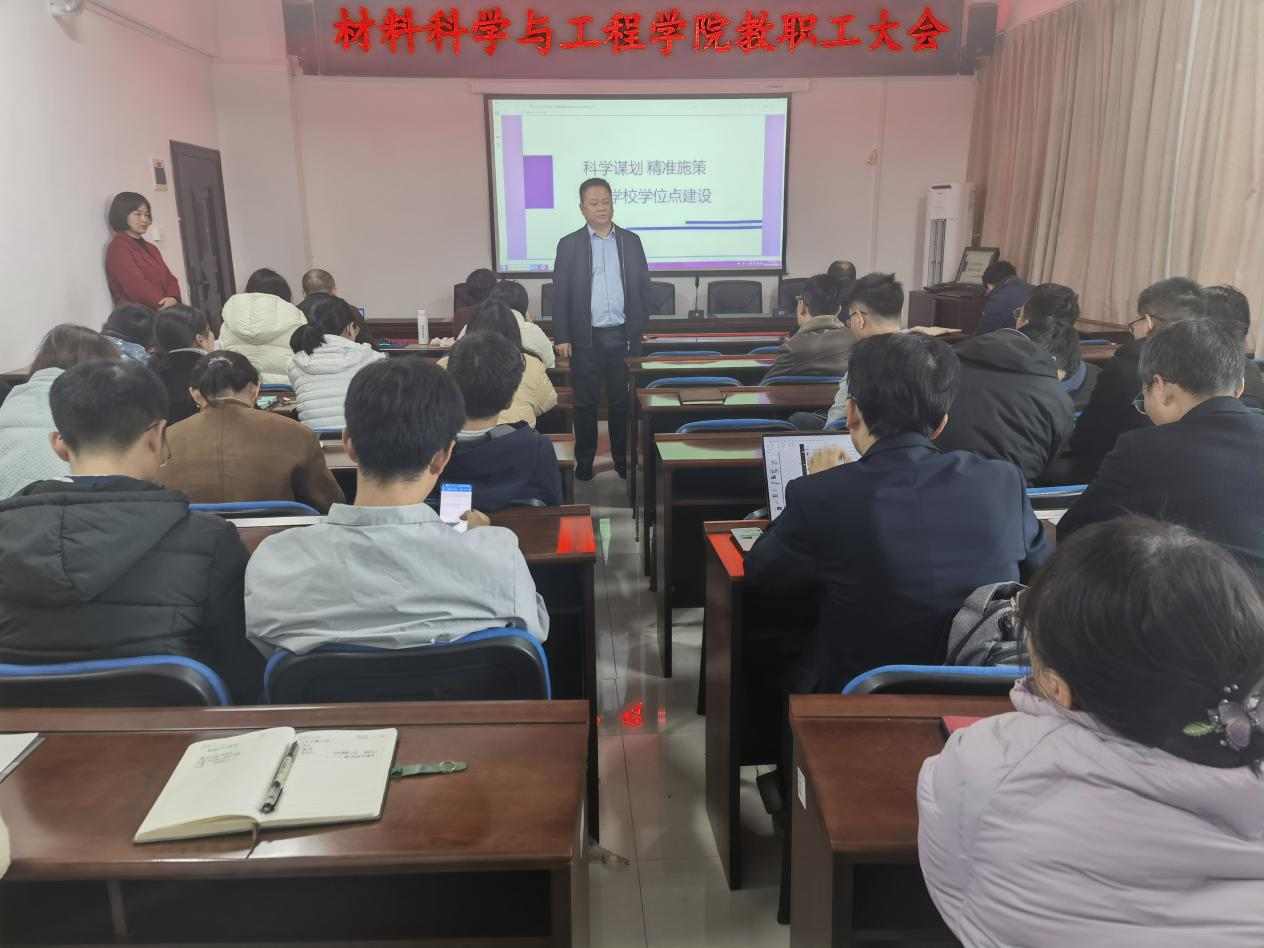 副院长谢炜对博士点申报、研究生培养和科研工作进行了安排布置。他强调,博士点申报工作已经正式启动,需要广泛征求意见、精心组织和汇聚各方力量。他期望全体教职员工能够齐心协力,在材料科学与工程一级博士点申报工作中取得突破。