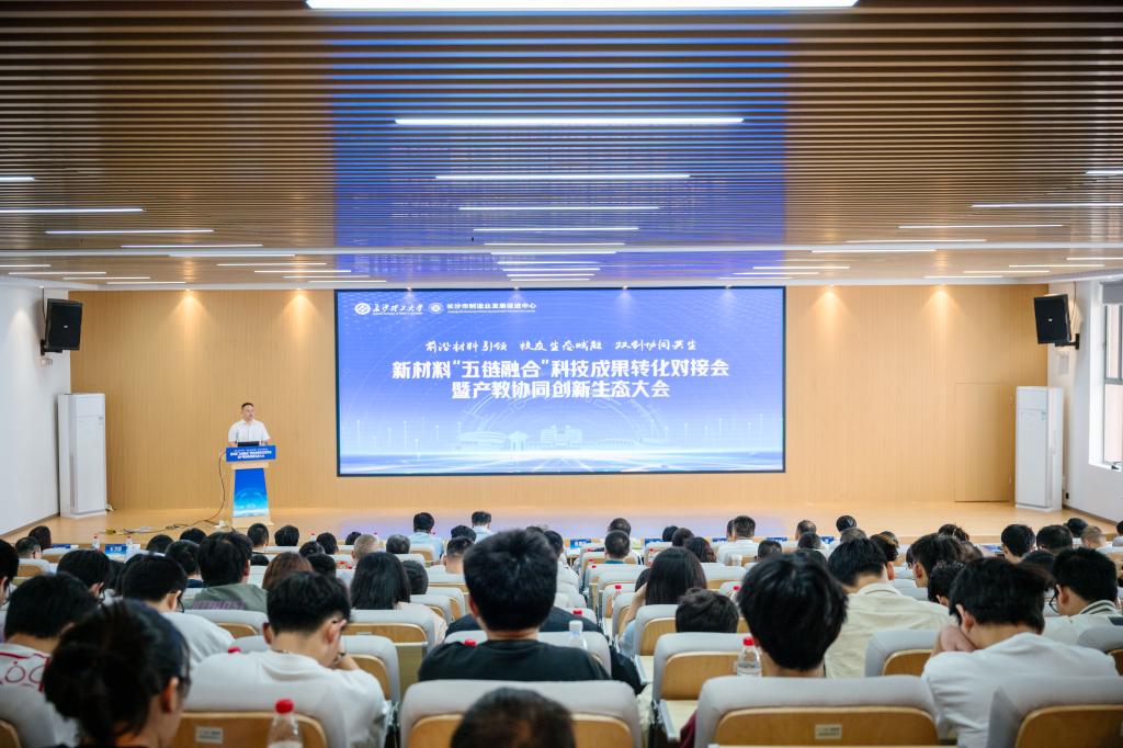 4月26日上午,材料科学与工程学院在云塘校区新能源大楼四栋顺利举办新材料“五链融合”科技成果转化对接会暨产教协同创新生态大会。会议由永利集团88304官网材料科学与工程学院、长沙市制造业发展促进中心及永利集团88304官网校友总会校友促进经济发展专业委员会联合主办,聚焦“学科链、产业链、资本链、人才链、校友链”五链深度融合,吸引了来自政府、高校、企业及投资机构的百余名嘉宾齐聚一堂,将企业“出题”与高校“解题”紧密结合,推动新材料科研课题从生产一线中来、科研成果到生产一线中去。