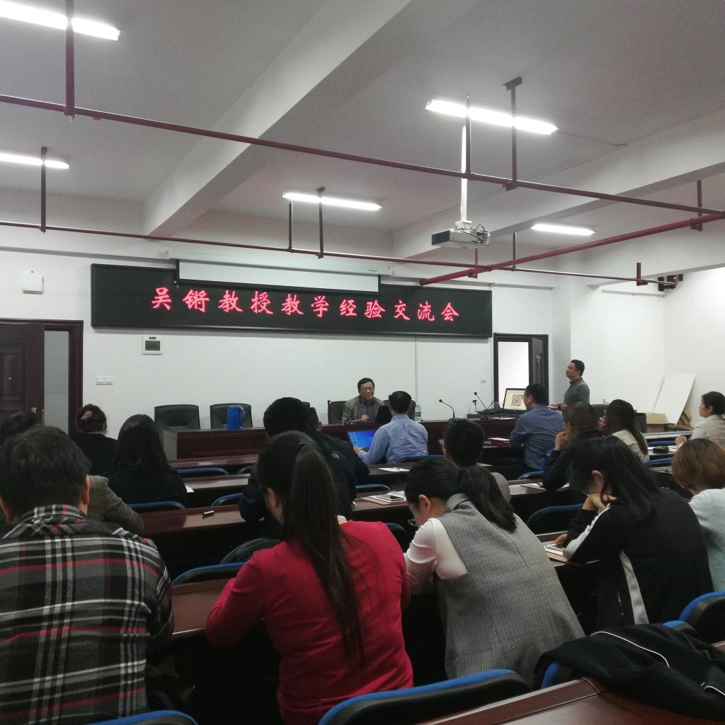 为深入推进学院“不忘初心、牢记使命”主题教育工作,并结合习近平总书记在全国教育大会上的重要讲话精神,强化教师师德师风建设和业务水平提升,培养和造就高素质人才。针对学院建院三年来引进了10位优秀博士来院工作,为进一步加强对他们上课堂前的培养工作,学院党总支边学边改,主题教育纵深到人才培养主阵地。特邀南京理工大学吴锵教授于2019年10月22日下午3:30来我院开展教学示范及教学经验交流活动,学院全体教师参与了此次交流活动。此次活动由学院党总支书记张国强和学院青年教师丁美教授共同主持。