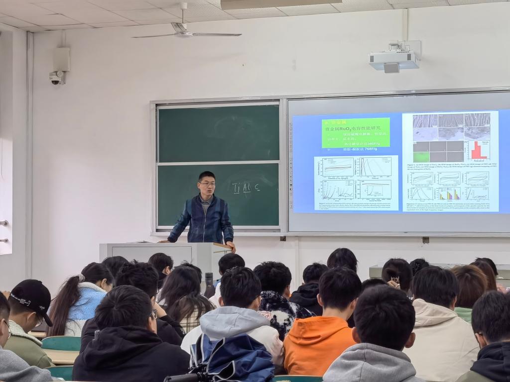 4月24日,范金成教授在云综教B-408教室开展了一场别开生面的《新能源材料与器件基础》课程思政示范课。全体新能源材料与器件系教师旁听了此次示范课。教学内容围绕“超级电容器及电极材料”这一单元主题,从超级电容器的概念特点、结构种类、工作原理、电极材料以及产业化状况五个方面介绍了超级电容器。范教授在课堂教学过程中,从双电层电容器的发现史切入,通过电容器的理论延伸发展,对电极材料的认识研究不断加深,引导学生对待科学研究要有开放的心态,开拓的思维;在课堂中,范教授多次在课件中引用课题组的研究成果内容和当前超级电容器方向相关的前沿研究内容,鼓励学生们积极进入实验室开展学习和研究工作,将理论付诸实践;最后,范教授提出了超级电容器的研究和产业化过程中存在的问题以及需要突破的瓶颈,总结了超级电容器的发展方向,并鼓励学生开拓思维,把锂离子电池材料与超级电容器材料相结合,结合二者的优势,实现能量密度与功率密度的共同提高。
