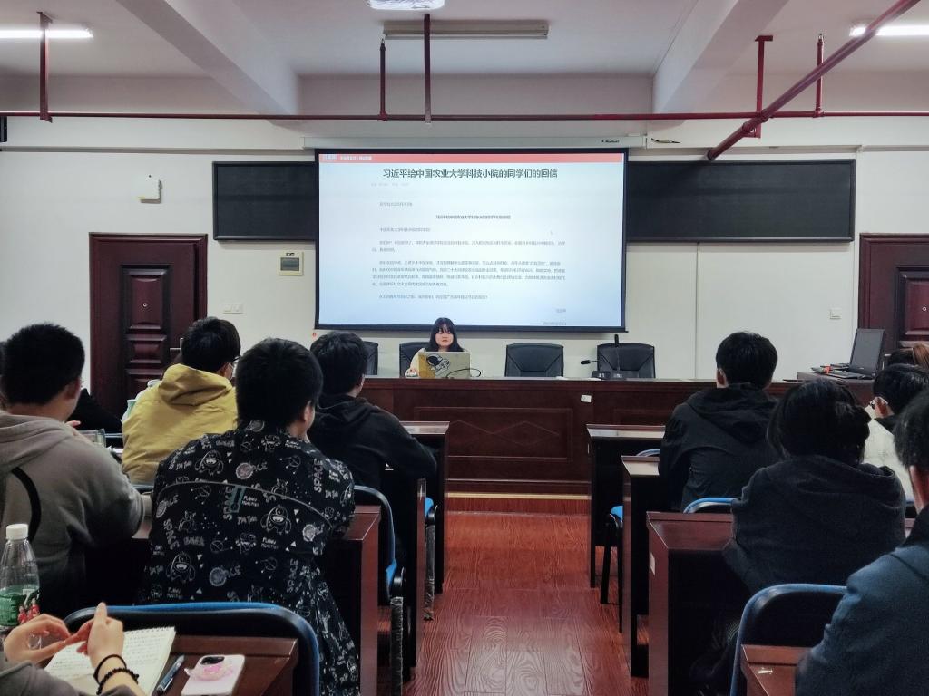 会上,全体党员共读习近平总书记给中国农业大学科技小院的同学们的回信。习近平总书记夸赞同学们“新时代中国青年就应该有这股精气神”,信中承载了总书记对新时代青年的殷切期望。随后,全体党员同学集中观看青年教育影片《中国青年:我和我的青春》,影片分为《旗帜》《看见》《寻找》三个单元叙事,活动集中观看了《看见》这一片段。影片中支教老师将个人才干施展在宁夏黄土高坡,给贫困地区的孩子们带来了一次改变人生的教育机会,在西北荒漠上种出了璀璨的花朵。影片中融合了音乐与歌舞元素,彰显中国青年时刻与祖国同呼吸共命运的时代精神。