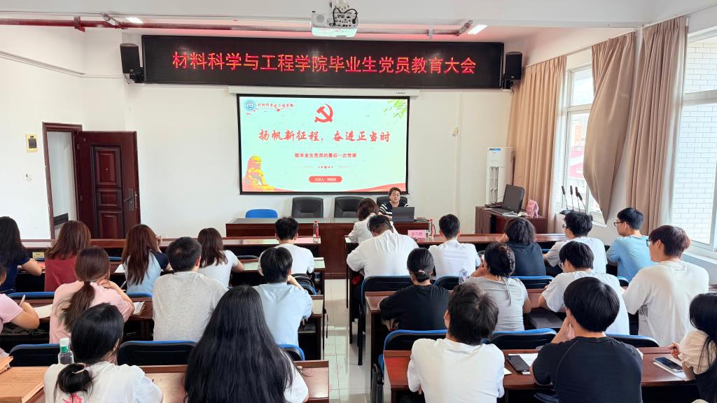 代表发言彰显担当。毕业生党员代表王金哲结合自己的入党经历发言:"作为新时代材料人,我们将以'国之所需,吾之所向'的信念,把论文写在祖国大地上。"其发言引发强烈共鸣,现场多次响起热烈掌声。本次活动是学院毕业教育的重要环节,为毕业生党员上了一堂生动的离校前"最后一课",进一步淬炼了毕业生党员的理想信念。