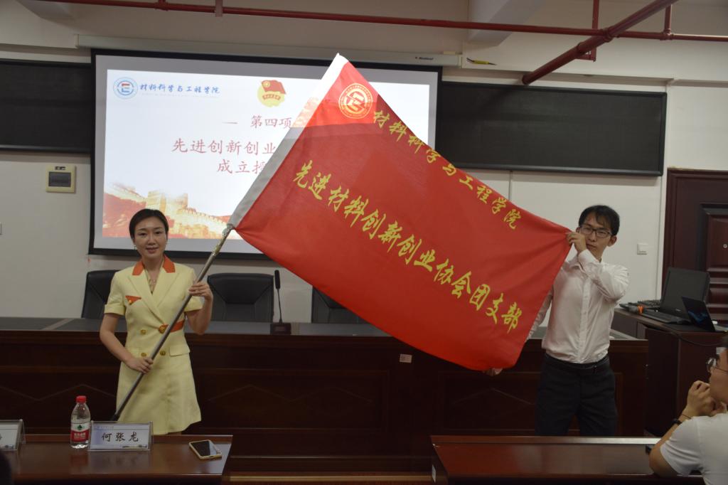 会议伊始,全体奏唱《中国共产主义青年团团歌》,由王志亮宣读了先进材料创新创业协会团支部成员名单。先进材料创新创业协会团支部成员代表何张龙发言,他郑重承诺作为首届协会团支书,我会争做创新创业内容的学习者、实践者、服务者,在老师的指导和成员的合作下,引领和凝聚更多同学投入到创新创业中去,建设更好的创新创业协会。随后,杨晨为先进材料创新创业协会团支部授旗并发言,她表示材料学院作为全校唯一一个研究类学科,还有获得许多奖项的优秀老师,希望大家能以此为契机,做出成绩,成为学校的优秀先进团队,为全校其他学子树立榜样。贺浩进行发言,他讲到材料学院作为研究性学院,我们会一直秉持研究和创新并行。同时,作为青年教师的一员,我们会作为大家科研的引路人、作好创业道路上的同路人,写出更好的科研论文。最后,陈华为贺浩老师颁发团支部指导教师聘书并讲话,她希望团支部充分发挥交流平台作用,实现创新创业者资源共享;充分发挥桥梁纽带作用,支持创新创业者更好发展;充分发挥管理指导作用,激发创新创业者创业热情。会后,参会人员进行合影留念。