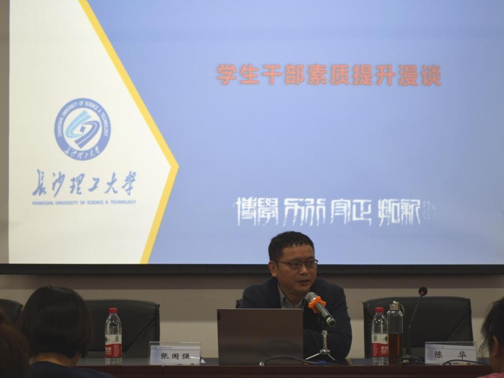 开班仪式结束后,张国强以“学生干部素质漫谈”主题为学员讲授培训班第一课,他从学院现状、学生干部定位、学生干部素质提升三个方面进行授课,详细介绍了学院现状和发展规划,鼓励同学们要有专业自信,相信小学院也有大舞台。随后,他就学生干部的定位开始讲解,强调学生干部不是官,而是勇于担当者和付出者。最后,张国强指出学生干部要有大局意识,围绕学院整体布局来开展工作,提高思想道德素质、能力素质、人文素质等综合素质。