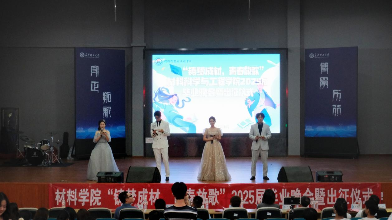 6月12日,材料科学与工程学院2025届“铸梦成材·青春放歌”毕业晚会暨出征仪式在云塘校区学生活动中心报告厅举行。学院党委书记郑延恒、院长毛卫国、党委副书记邵巧艳、副院长李灵均、关工委常务副主任刘兴旺、专任教师代表、辅导员们与2025届毕业生欢聚一堂,共话青春梦想,启航崭新征程。