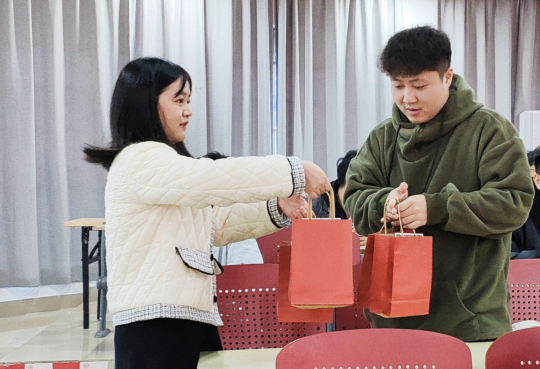 学院领导、教室同各班学生干部一起为考研学子发放考研助力包,切实让备考生感受到学院的温暖关怀。