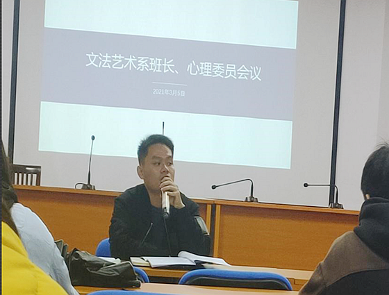 为强化学生教育管理,结合学院新学期初学生工作安排,3月5日,文法艺术系在二教101召开新学期班长、心理委员工作会议。会议由学工办系主任谭怀芝老师主持。相关师生与会。
