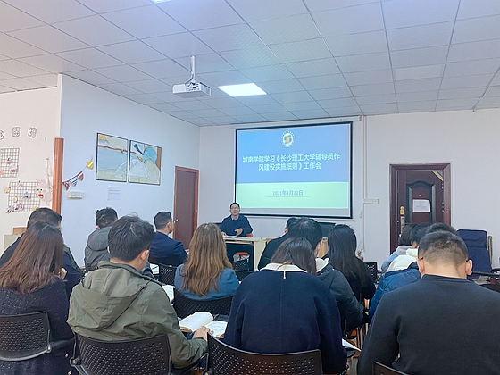 3月22日下午,城南学院在2教302召开《永利集团88304官网辅导员作风建设实施细则》学习工作会。副院长朱广峰及全院辅导员与会。学院党委副书记陶传谱主持会议。