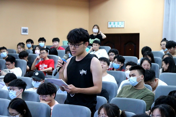本次讲座的主题是面向新基建与通信技术发展趋势。讲座中,王威以通信技术发展历程为起点,延伸至移动通信网络架构的演进简史,扩展了现代通信技术的应用,介绍了通信工程专业考研就业方向,明晰了大学黄金四年的关键作用,引导学生们洞见新知。他结合自己的亲身经历,生动形象地为大家解惑“专业与人生”,指出大学四年是人生最黄金的时期,要建立合适的学习目标、加强课外拓展能力。在专业学习方面,他强调了学习课程、学习方法和学科竞赛的重要性。在升学就业发展方面,他认为要正确审视自己,打好理论基础,培养良好素质。王威为大家分析了研究生考试和就业方向的选择等领域的社会形势,并与全体学生共勉:青年不应“躺平”,要燃起奋斗激情,一起向未来。他还与参会师生进行了互动交流,针对大家的提问给予了详细解答。