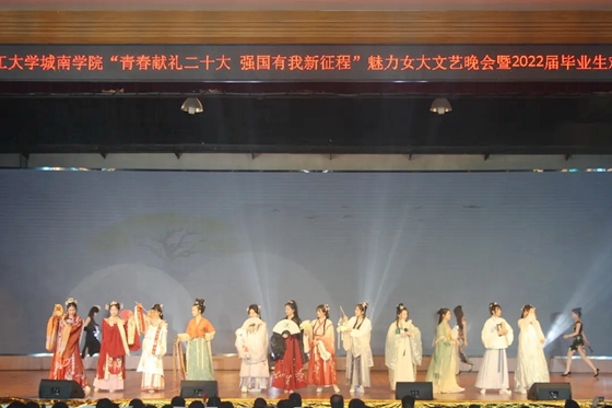 6月17日晚,城南学院“青春献礼二十大 强国有我新征程”魅力女大文艺晚会暨2022届毕业生欢送会在五教大礼堂举行,城南学院党政领导以及师生代表共一千余人观看晚会。经济管理系迟瑞、王晨歌、刘怡宏、马璐和文法艺术系周雅、史晨蕾同学担任主持。