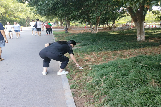 经过负责人的动员分工,同学们积极主动地到每个角落捡垃圾,分工协作,有条不紊。不一会儿,他们手中的垃圾袋里装满了垃圾。