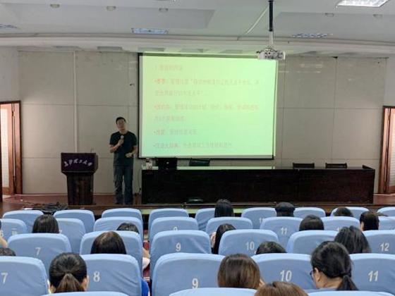 刘伟军围绕管理的内涵、工程管理的内涵、管理科学的发展、管理理念的转变及管理专业的素养五个方面,结合工程项目管理和工程经济与项目评价领域中的工作实例及市场案例,深入浅出地阐述了工程管理专业在工程建设、项目决策、项目投资、项目管理等方面的重要意义。他告诫全体学生在专业学习过程中要扎实专业基础,培养专业思维,拓宽专业视野、强化专业本领,为成为掌握现代管理科学的理论、方法和手段的复合型高级管理人才努力奋斗。