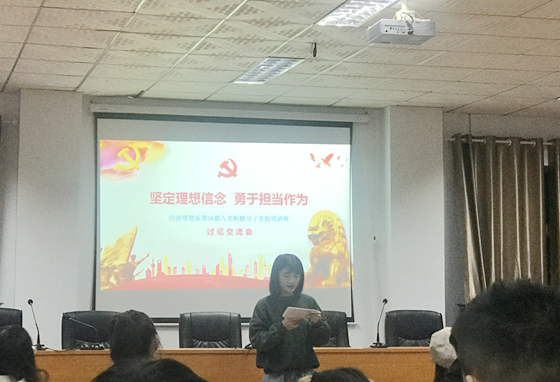 11月20日晚上, 经济管理系第34期入党积极分子培训班学员在二教201召开专题讨论会。会议由系党总支副书记谭怀芝老师主持。