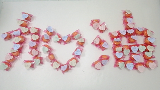 其实,该系的各位老师及学弟学妹们昨日(18号)便已经将礼物包装好,甚至晚9点的办公室,还在为准备礼物忙碌着。他们将橙子一个个打包并贴上祝福语,用紫色的丝带将旺旺雪饼包装起来,并将准备好的信和明信片一一装进每一个同学的专属信封里,每一种颜色、每一个数字都经过了仔细斟酌,每一个细节都体现着爱和感动,希望这份精心准备的心意可以让考生们感受到温情与力量。