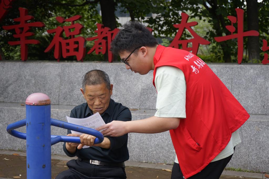 与此同时,另一支服务队在社区广场忙碌,搬离并清洗公共座椅、为老人普及老年健康饮食知识。他们通过图文讲解的形式,向老人传递健康生活理念,发放健康知识海报20余份,细致入微的服务让老人们倍感温暖。活动现场,老党员周大爷拉着学生的手感慨:"这些孩子就像自家孙辈,既帮我们解决实际问题,又带来精神上的欢乐。"