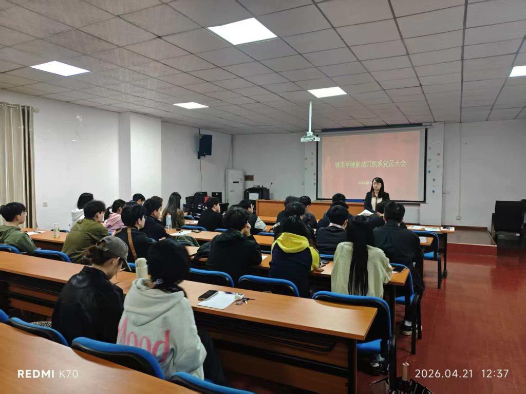 为进一步强化党员先锋模范作用,压实党员责任担当,规范毕业生党员离校管理,筑牢基层党建工作根基,4月21日中午,能动汽机系召开全体党员大会,聚焦党员责任岗履职、毕业生党员离校教育两大核心工作进行专题部署。会议由辅导员李若云主持。