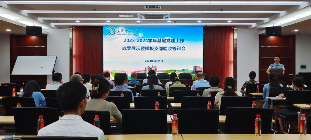 2024年6月25日,永利官网2023-2024学年基层党建工作成果展示暨样板支部验收答辩会在图书馆102报告厅举办。特邀专家王乃厚、张可荣、胡秀英、郝海霞、李祝平、刘东奇出席并任评委,教工样板党支部书记、各二级党组织组织员、党务主任(干事)等60余人参会。会议由组织部副部长、党校副校长王煜坤主持。