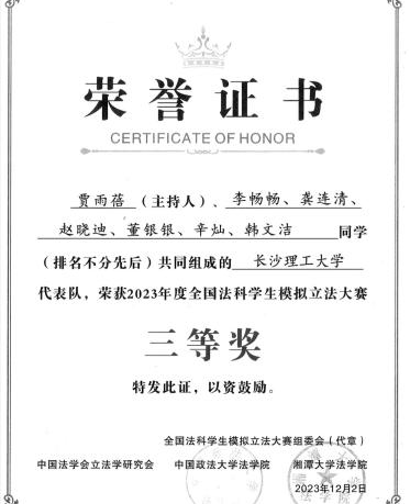 2023年度全国法科学生模拟立法大赛12月2日在中国政法大学落幕。永利官网学子获全国二等奖1项、全国三等奖1项。