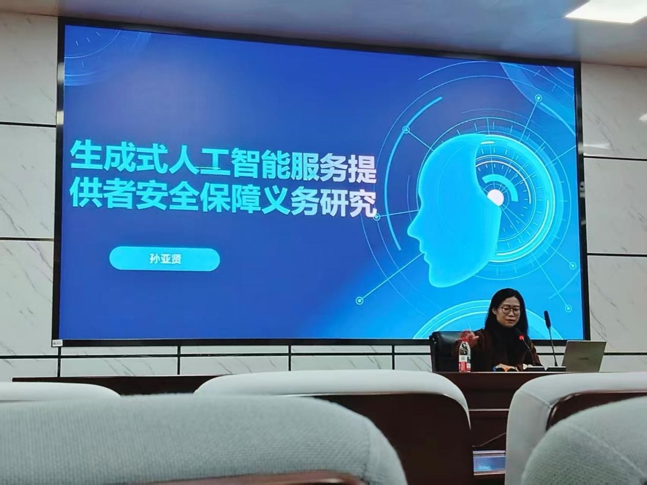 为帮助同学们明确生成式AI服务的安全责任边界,把握数字时代法律前沿动态,永利集团88304官网法学院于12月4日晚在四教报告厅成功开展以“生成式人工智能服务提供者安全保障义务研究”为主题的通识讲座。本次讲座由法学系主任孙亚贤老师主讲,我院学子积极报名参与。