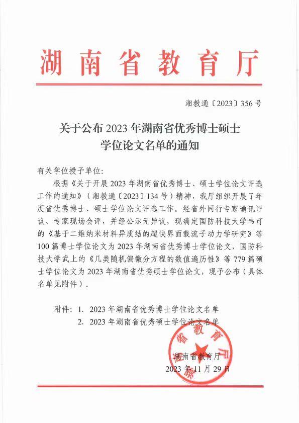 喜报!我院研究生获评湖南省优秀硕士学位论文奖