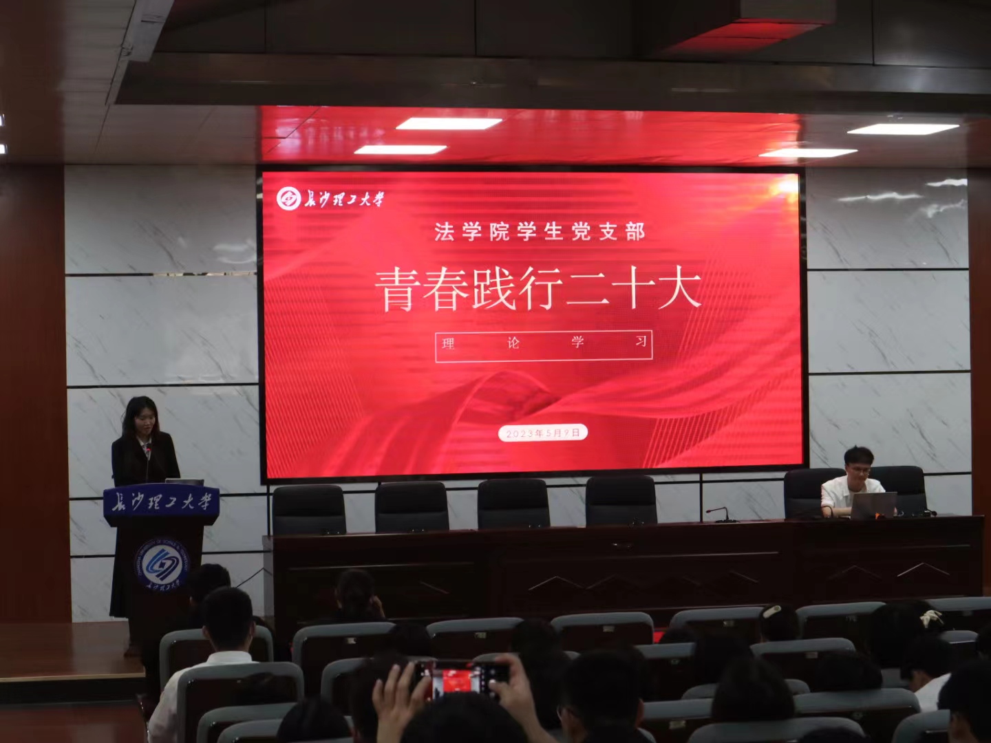 最后,主持人黄灿就本次活动作总结发言,希望法学院全体党员都能深入贯彻学习党的二十大精神、学习党的时代精神,学好专业知识,增强党性修养,未来都可以成为有理想、敢担当、能吃苦、肯奋斗的新时代好青年,扎根基层沃土,绽放青春之花。