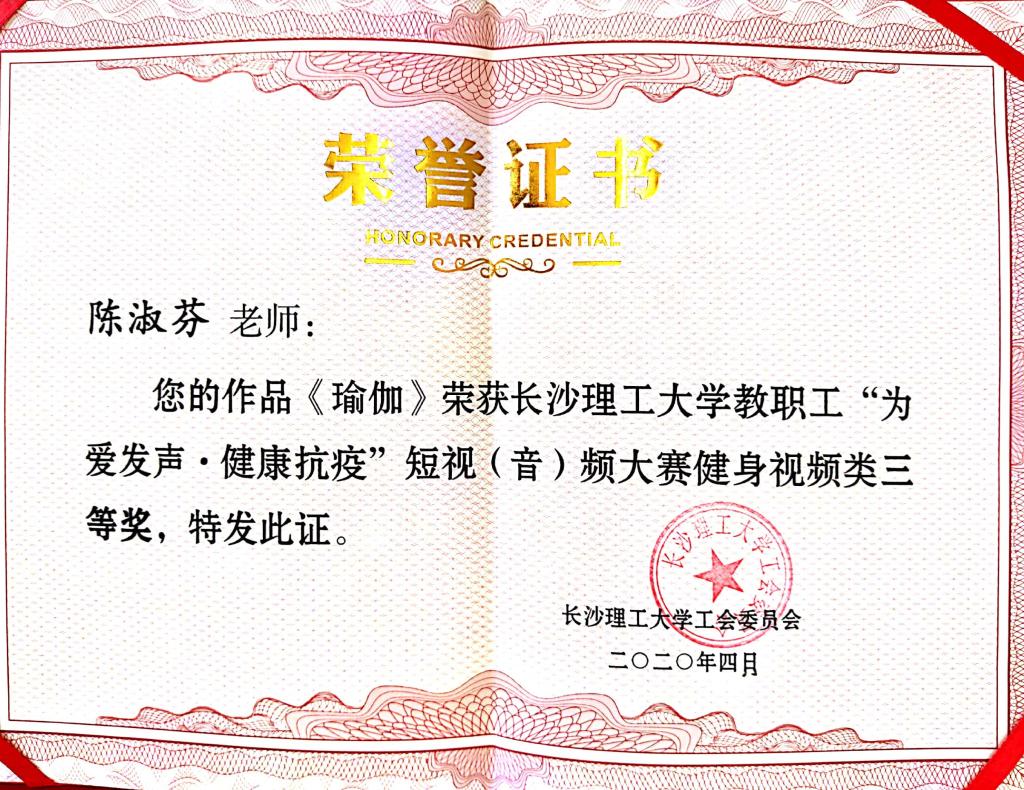 3月5日,校工会发布《关于举办永利集团88304官网教职工“为爱发声•健康抗疫”健身、朗诵短视(音)频秀活动(大赛)的通知》后,法学系分工会积极组织老师们参加。法学系张敏纯、田兴洪、易顶强、陈杨、姜明、陈淑芬、申纯、孙亚贤、张涛、何凌、熊文娟、陈骞等12位老师提供了9件参赛作品,其中健身视频秀作品7件,朗诵音频秀作品2件。经过法学系组织评审组评选,推荐易顶强、陈杨、姜明、陈淑芬、张涛、何凌、熊文娟、陈骞等人的5件作品参加学校决赛。陈淑芬老师的作品《瑜伽健身》荣获健身视频秀类三等奖。