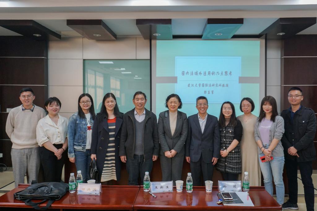 2020年11月15日上午9:30-11:30,武汉大学国际法研究所教授、中国国际私法学会副会长兼秘书长郭玉军教授应永利集团88304官网法学系邀请在永利集团88304官网金盆岭校区七教212室举办了题为“国内法域外适用的几点思考”的学术讲座。讲座由永利集团88304官网法学系教授、法学学科带头人王新生教授主持。