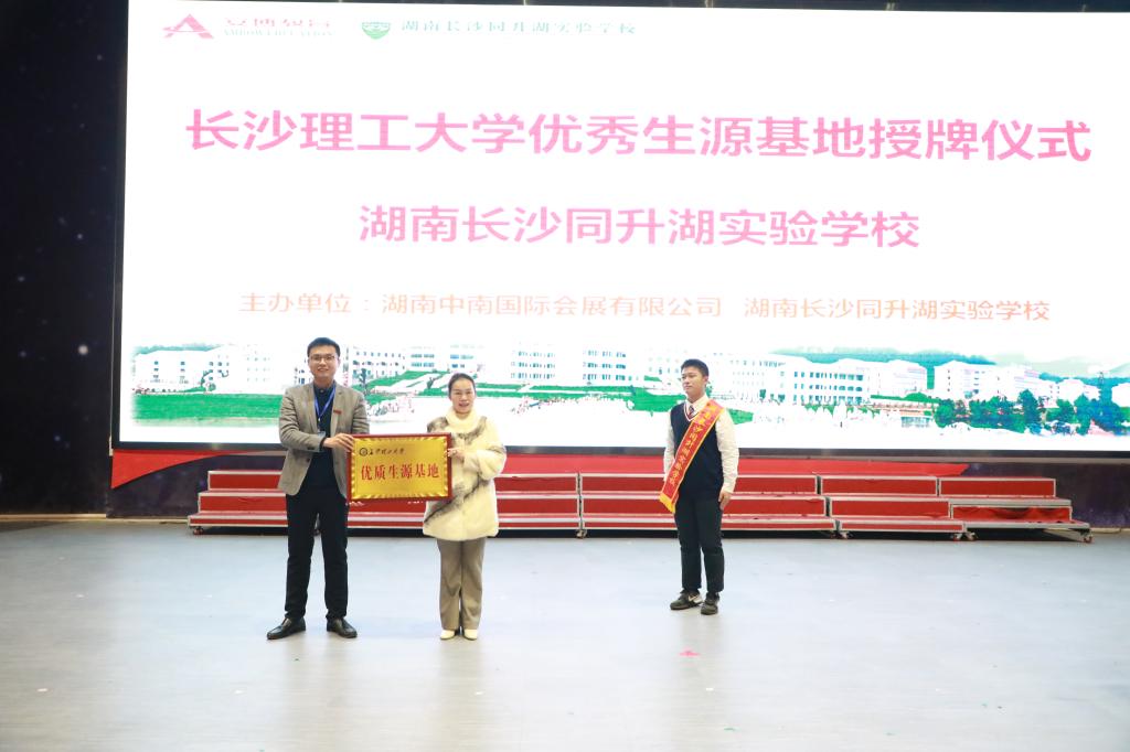 为积极推进学校和学院本科招生宣传工作,吸引优质生源,优化生源结构,选拔高素质优秀人才。12月16日,永利官网法学系赴同升湖实验学校开展生涯规划教育暨招生宣传,并进行共建优质生源基地协议签约及授牌仪式。同升湖实验学校副校长兼发展中心主任朱元英、高中部主任姚丽君与永利官网法学系招生专干刘阳共同出席活动,活动吸引了该校高一至高三千余名同学参与。