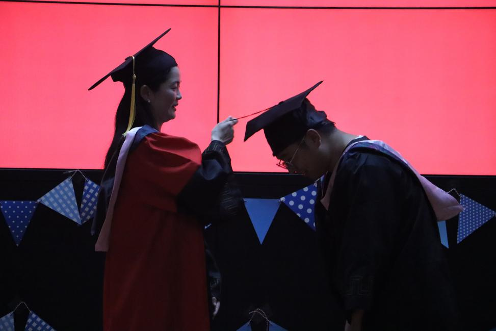 “下面有请来自川蜀大地,即将奔赴祖国基础设施建设主战场的李芳芳同学登场。”仪式现场,辅导员抛开花名册,根据共同成长中的点滴回忆,一一点名。张敏纯院长为每一位毕业生正冠拨穗,并在致辞中细数同学们作为特殊一届所经历的前所未有的挑战、感悟的和衷共济的力量、收获的无惧风浪的成长,并勉励广大毕业生,用自我管理的确定性对抗世间变局的不确定,用自我调节的稳定性对抗人生演变的波动性,用自我提升的持续性走好人生长跑的马拉松。