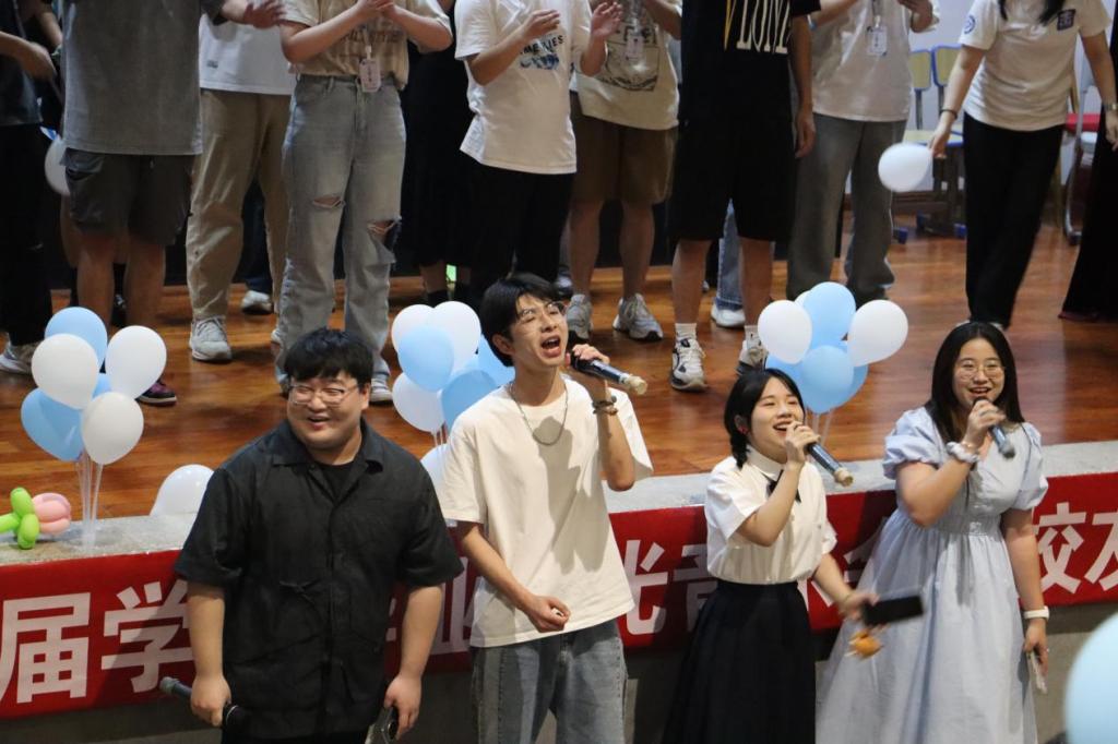 时光音乐会以呈现广大毕业生四年来有梦、追梦、圆梦的心路历程为主线,在旋律中展现母校情、师生情、同窗情,每一首歌曲都引发全场合唱和情感共鸣。开场视频《我想对你说》、光影剧《我的大学》、开场舞《I can't stop me》将全场气氛点燃。《我的未来式》《飞云之下》等歌曲唱出同学们积极有为、奋发向上的精神状态。《羽众不同》等曲目旋律优美婉转。老师们深情演绎的《那些年》《这世界那么多人》《只要你过得比我好》更是唱出了毕业季珍重与眷恋交织的情感。最后,全场师生用一曲《再见》期待同学们奔赴星辰大海,再见仍是少年。
